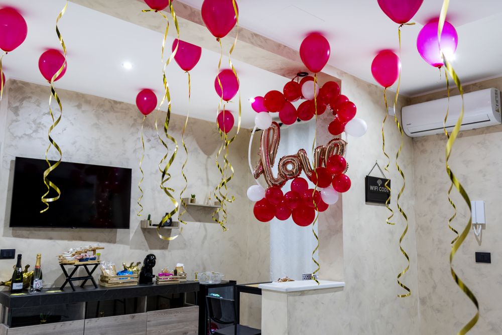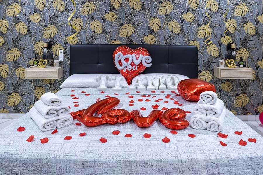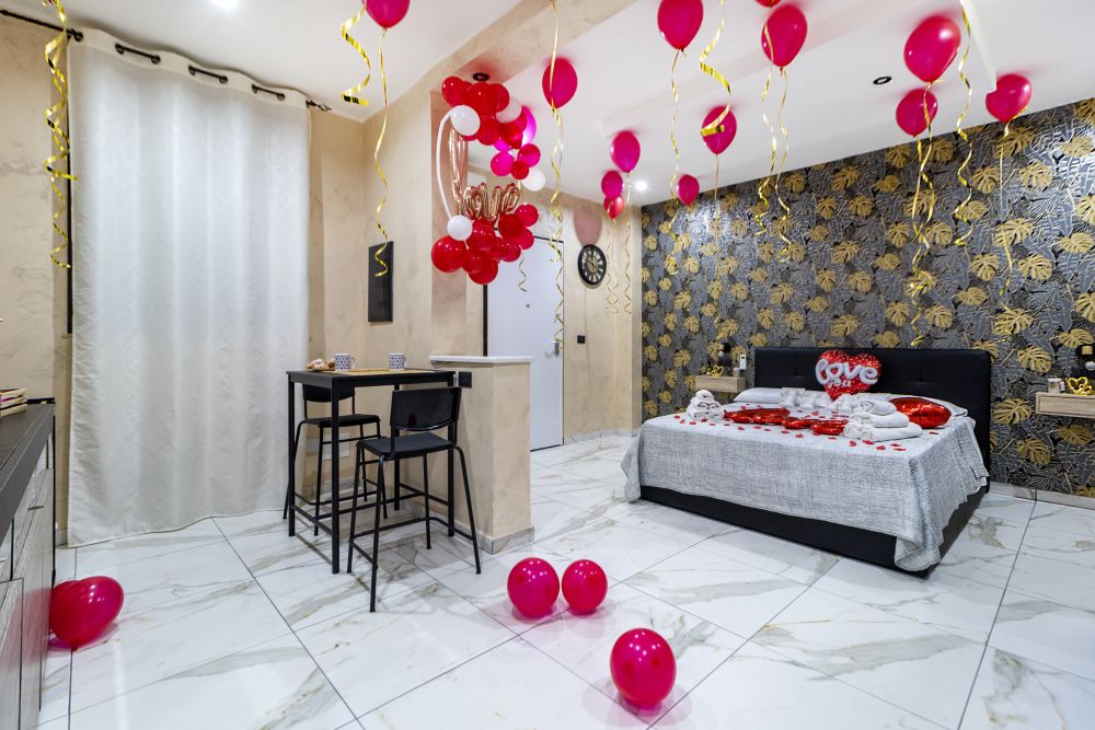 State festeggiando un'occasione o una ricorrenza? Stupisci il tuo partner con palloncini, petali e cuori per una serata da incorniciare.