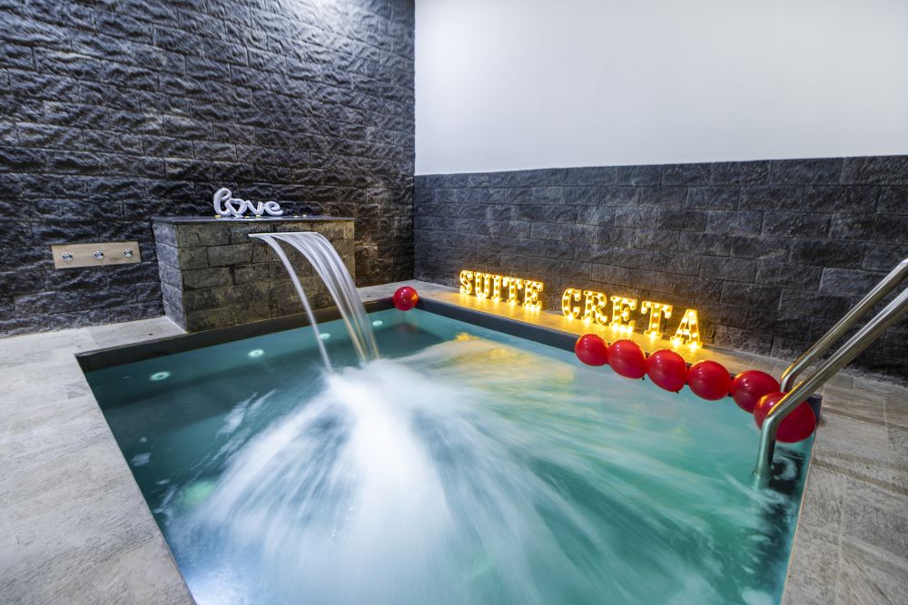 Suite Creta Apartment, finemente arredata in stile moderno, dispone di una piscina interna con idromassaggio e cromoterapia.